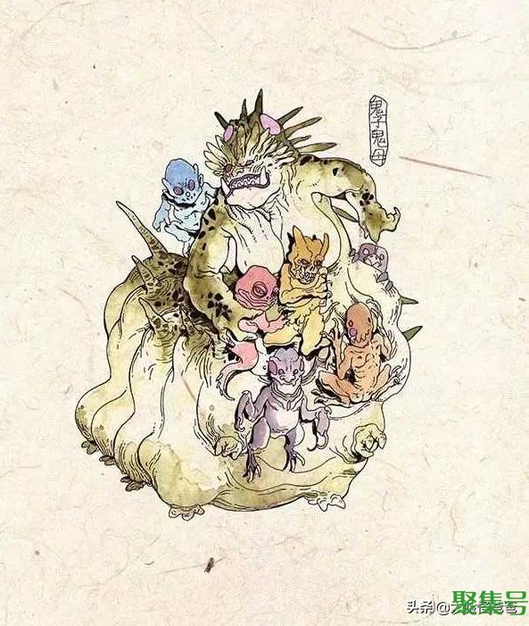 这位鬼母又被称为鬼姑神,每天都要生产下十个鬼,早上产下来,晚上再把它们吃掉。这个鬼母在上古的神话中几乎找不到痕迹,很有可能就是受到了印度佛经里的九子鬼母故事的影响。