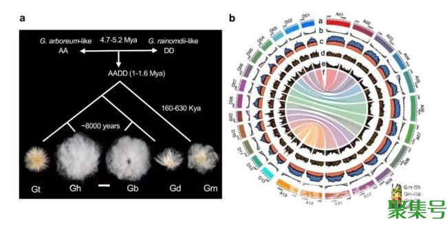 该研究还发现,不同棉种在150万年的杂交、多倍化和进化过程中,基因数量和排列结构并没有非常显著的变化。而在8000年左右的人工驯化过程中,陆地棉和海岛棉的纤维长度和品质等发生了显著改变。研究揭示,虽然陆地棉和海岛棉是独立驯化,但驯化促使两种栽培棉花的纤维发育基因共表达网络趋向一致。