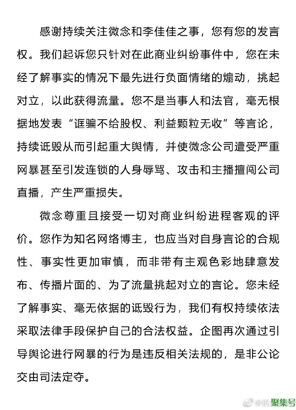 据悉,博主“兔撕鸡大老爷”曾表示,李子柒现状远比想象中的惨,她在股权架构中吃了大亏,有可能颗粒无收。杭州微念品牌管理有限公司则认为其屡次在微博和知乎平台上发布侵权言论,误导网络公众,并回应称:是非公论交由司法定夺。