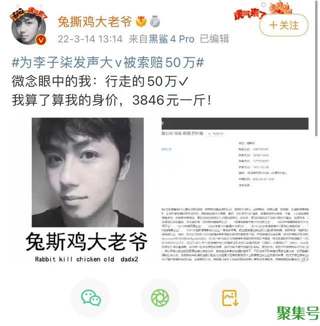 3月14日,据微博大V“兔撕鸡大老爷”在其微博爆料,因其去年9月16日曝光了李子柒利益受损,被杭州微念品牌管理有限公司@杭州微念 起诉网络侵权,并被索赔50万人民币。