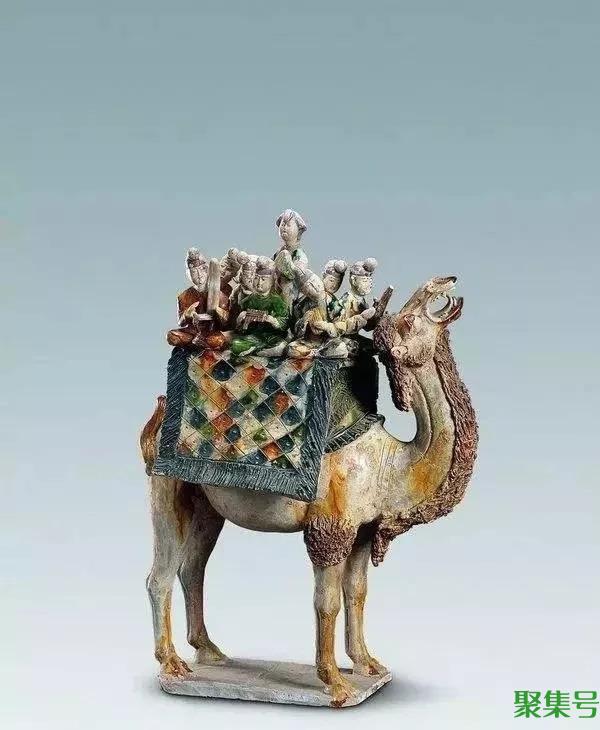 骆驼也是重要的交通工具。常见的造型:胡人牵骆驼。