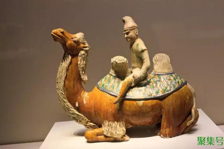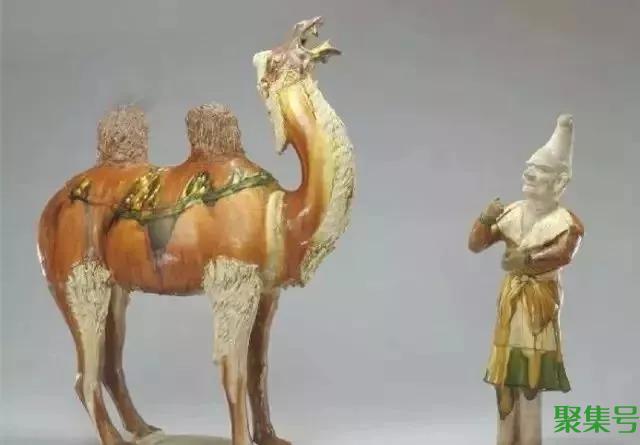 唐三彩中有许多深目高鼻的胡人牵着骆驼的形象,可以想象,他们曾频繁往来于连接欧亚的“丝绸之路”上。
