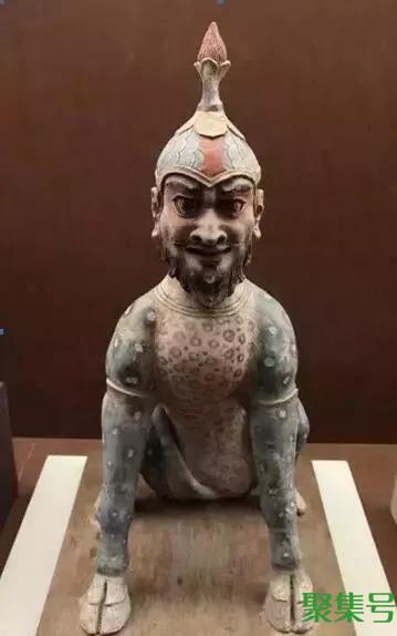 除了反映现实的作品,唐三彩中还有神话人物,比如天王和小鬼。