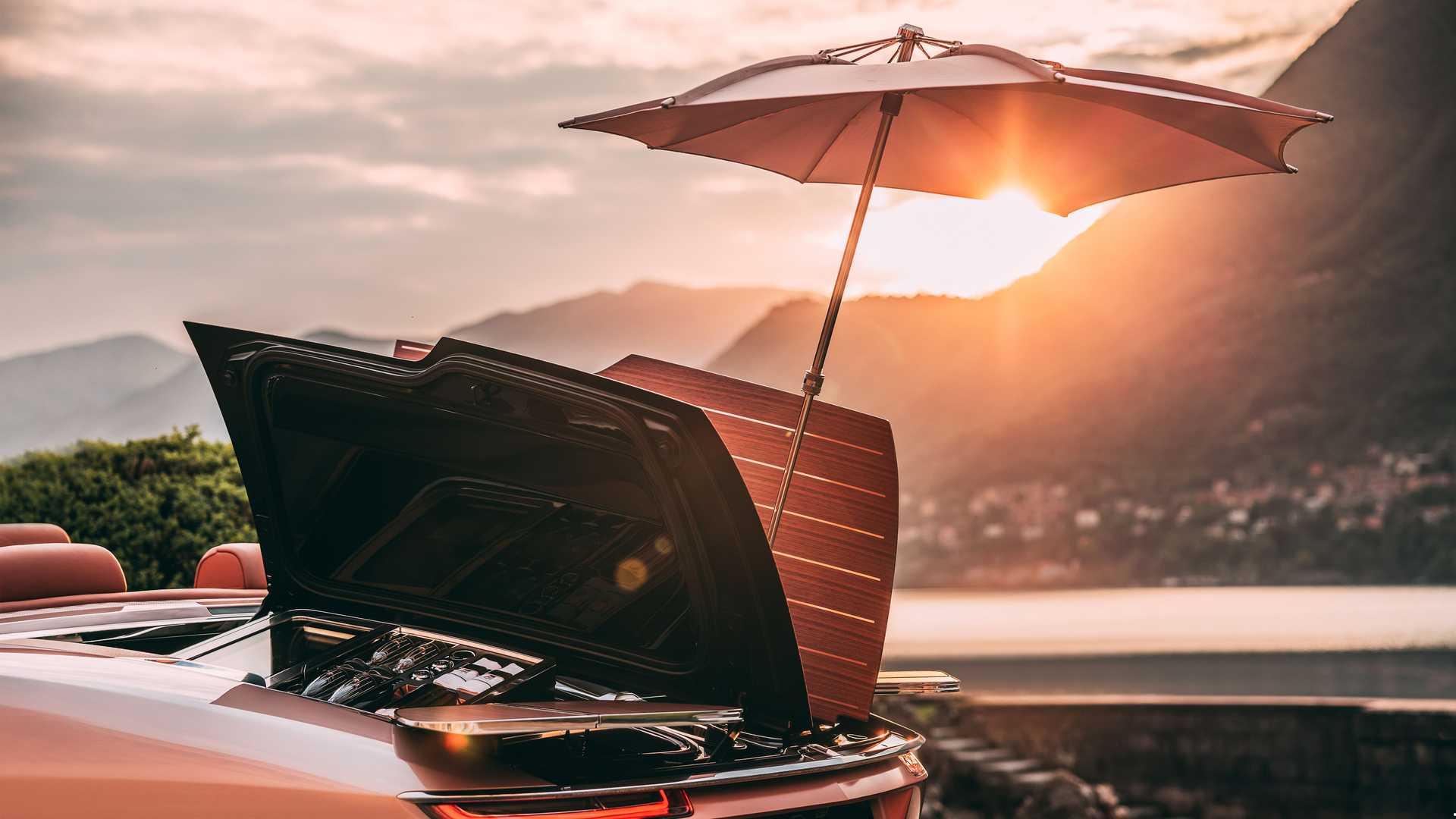 受珍珠行业巨头的委托,这款四座跑车采用了新颖的可折叠后部,配有一套定制版野餐套件和伸缩遮阳伞,用于野外露营最合适不过了,当然这种方式实在是太奢侈了,根本不是一般人能做到的,毕竟这是一辆价值2800万美元的车。