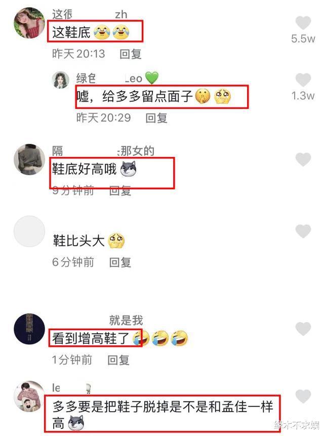 甚至有粉丝戏谑到:“多多要是把鞋子脱掉,是不是和孟佳一样高”