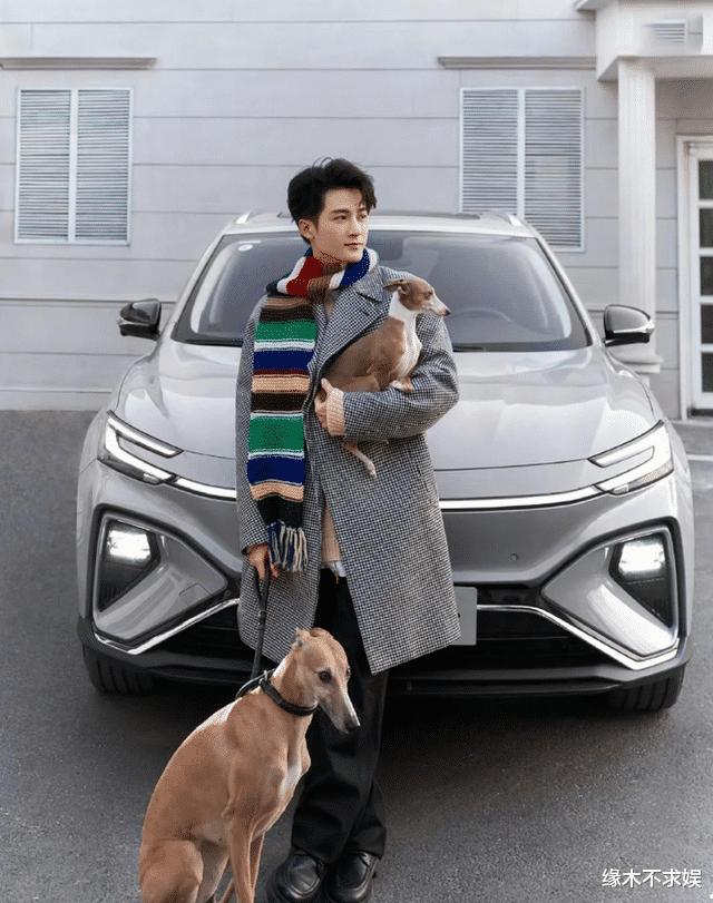 在某杂志大片中,他穿着格纹大衣,一手牵着狗,一手还抱着小狗,画面生动有爱,颈间的彩色条纹围巾也分外夺目。他走在马路上,力挺的身姿很是拉风。