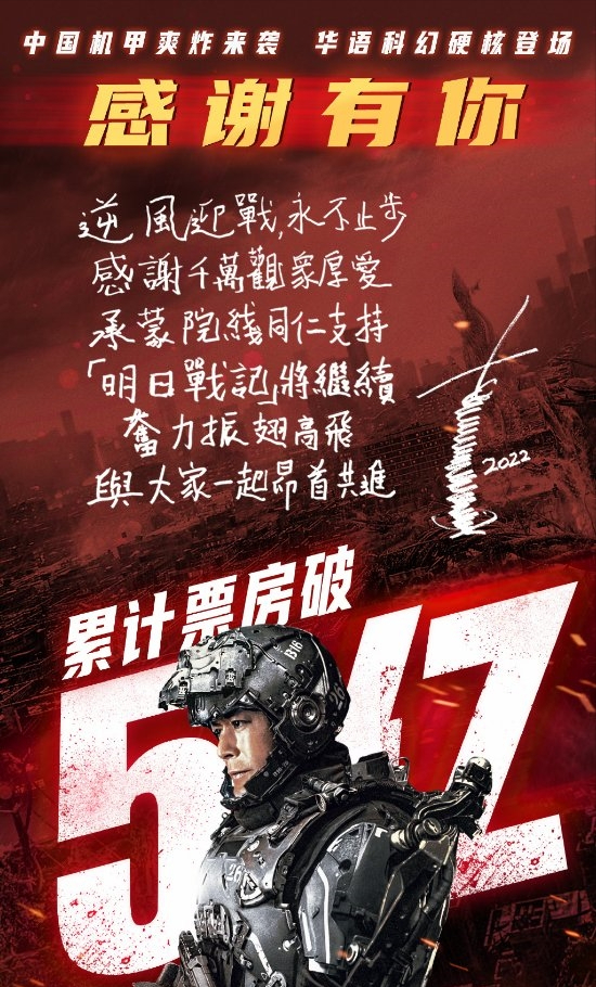 截止到目前为止,《明日战记》票房已经达到5亿,虽然离预期的票数还有一大段距离,但古天乐还是感动得不行,手写了感恩海报。