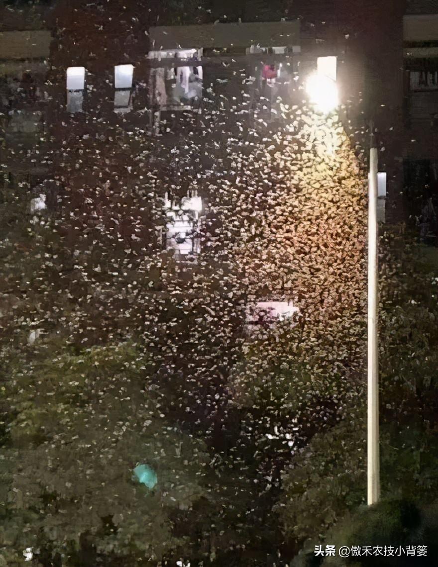第三,白蚁属于隐蔽活动、怕光又(成虫)趋光的虫害习性。白蚁大多都是在蚁穴墙缝中藏匿着生活,但在夏季白蚁交配高峰期时,那些带翅的成虫就会在傍晚时飞到路灯下等有光照的地方群飞交配,比如说现在傍晚以后你去路灯下转一转,会发现路灯下有大量乱飞的成龄白蚁。