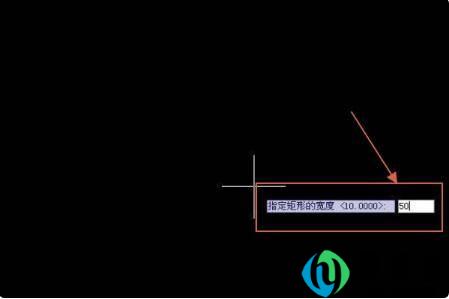 5、您还能够看到矩形的指定宽度。输入宽度50做为示例,输入后按键盘上回车键确定即可。