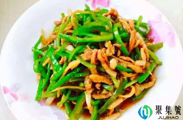 4、把炒锅放到泼油救火、油热时放姜丝炒出香味、放肉、加盐煸2分钟摆布。