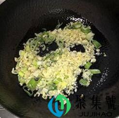 2、锅中倒油,然后爆香葱姜蒜。放入线椒。