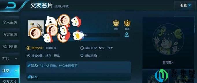 正文 如何隐藏王者荣耀中的称号地理位置 百科达人 V网站编辑 /2021-09-30 16:29:32 /253 阅读 0930 第一、 首先我们选择点击打开王者荣耀游戏,并且登陆自己的相关账号。 第二、 然后我们在首页点击左上角的自己的头像 第三、 紧接着进入到相关页面以后,我们点击下方的社交,再点击交友名片。 第四、 最后点击自己的位置后面的定位的图标,再点击右上角的设置,点击暂不使用即可。 声明:本文内容及图片来源于读者投稿,本网站无法甄别是否为投稿用户创作以及文章的准确性,本站尊重并保护知识产权,根据《信息网络传播权保护条例》,如果我们转载的作品侵犯了您的权利,请在一个月内通知我们,我们会及时删除。请将本侵权页面网址发送邮件到laoyang1981@qq.com,我们会及时做删除处理。