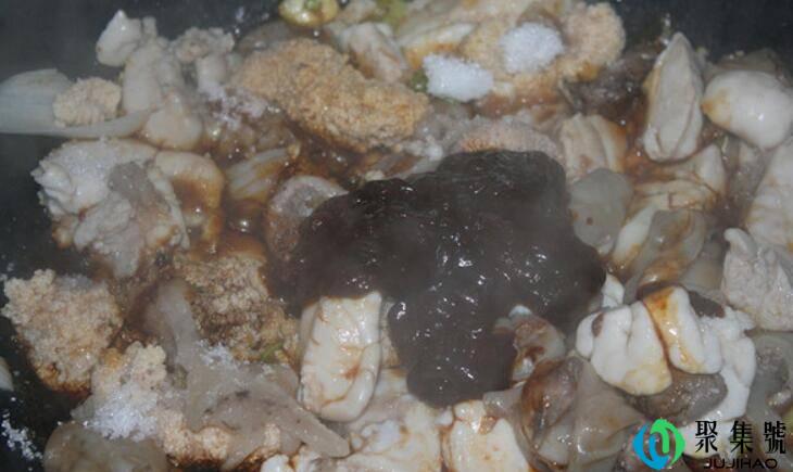 用料:鱼鳔鱼杂500克、黄豆酱适量、葱适量、姜适量、蒜适量、白糖适量、白酒适量、醋适量、鸡精适量。