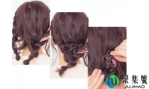 还有一些直线型的细发带,可以编在头发里,把头发分成前后两部分进行分印,前面刘海的部分可以中分,后面的头发可以稍微侧分,这样整体头发比较蓬松,看起来比较生动。然后把头发左右分开进行编发,用两个黑色发卡,把发带穿在里面,分别固定在头的两侧,然后扭转编发,从侧面编到发尾,这个过程把发带一起编到头发里。再把两边编好的头发盘在一起。让头发看起来更蓬松,打造出活泼的造型,也有减龄的效果,而且发带和头发盘在一起不会脱落。