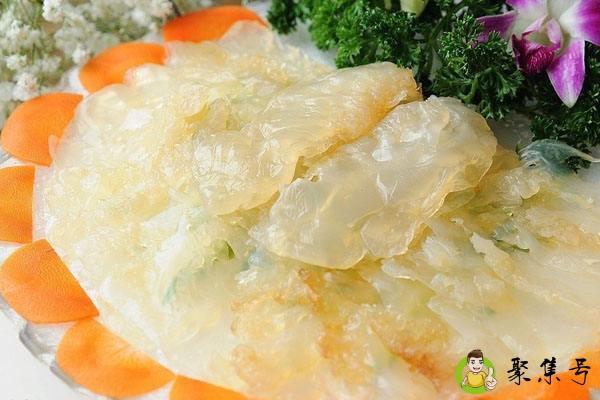 接下来就应该把切好的海蜇丝挤干净水分然后准备焯水了。注意的是焯水所要用到的水需要用到温水,也就是六十摄氏度到七十摄氏度之间的水,大概在水中焯水三分钟就可以拿起来,泡在冷水里或者冰水里面了。海蜇头其实只是海蜇身体的一个部位,海蜇整体来说不只有海蜇头可以食用,它是一种水生无脊椎动物,它除了伞部的口腕,也就是人们常说的海蜇头经常被食用之外,其他的部位也是很美味的。一般海蜇的水母体会在海洋之中营浮游的生活,它们主要生存环境是在离海岸很近的地方,如果是在河口附近的话,它们会更喜欢。而且它们也不会生存在水很深的地方,一般是在水深五米到二十米的地方。最深也就是四十米。