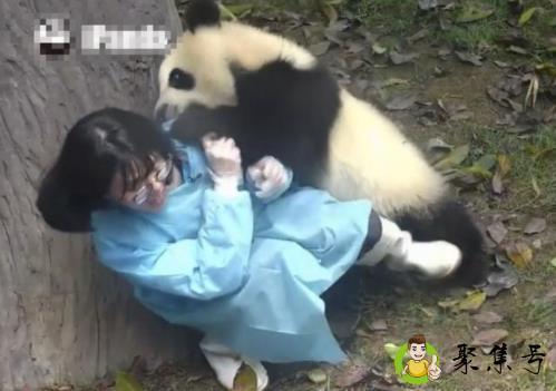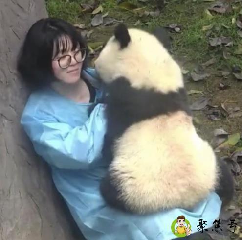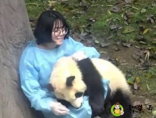 有一天,这一位饲养员奶妈进了熊猫的园区,想要跟熊猫宝宝玩,所以他走到了一棵树坐了下来,熊猫一看到饲养员就跑过来找他,还一直对着饲养员求抱抱,动作非常的可爱,因为这一只熊猫现在还没有成年体型还很小,所以饲养员还可以把它抱起来玩。