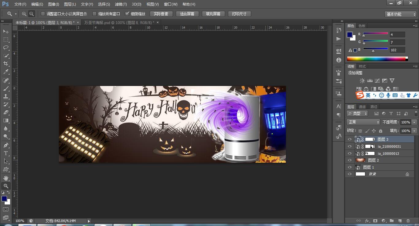 4.同上步骤移动另一个灭蚊灯的素材图片到画布,并添加蒙版