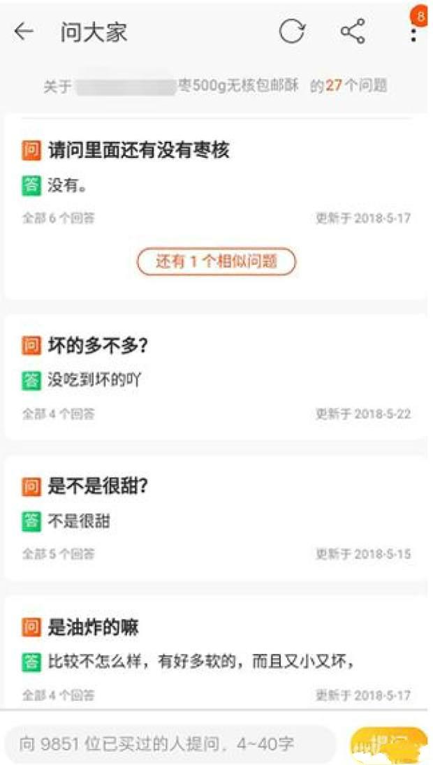评价和问大家是最可以体现买家需求点及对产品顾虑点的地方,大家可以翻评价几页,这个不要偷懒,如果仅仅看几个评价,那是完全没有效果的,一定要多翻几页,然后从评价中抓取买家的需求点和顾虑点,也有很多卖家说有些评价的可参考性比较低,都是自己写的,那么可以参考问大家,问大家相对评价内容比较少,更容易抓取自己想要的信息!通过提问的问题,及回答的答案都可以看出消费者的侧重点。应顾客所需,你的主图点击都不会差!