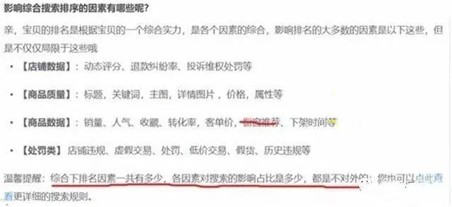 4)橱窗推荐已经下架,下架时间作用效果几乎不大了综合以上,最能拉开综合排序的因素就是商品质量和商品数据。商品质量其实也就是我们常说的店铺基础(自然搜索)优化,它也直接影响着商品数据。