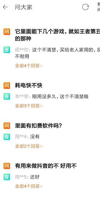 用了多久、性能怎么样、耗电如何、包邮不、有没有刮痕、卡不卡、有没有磨损等。