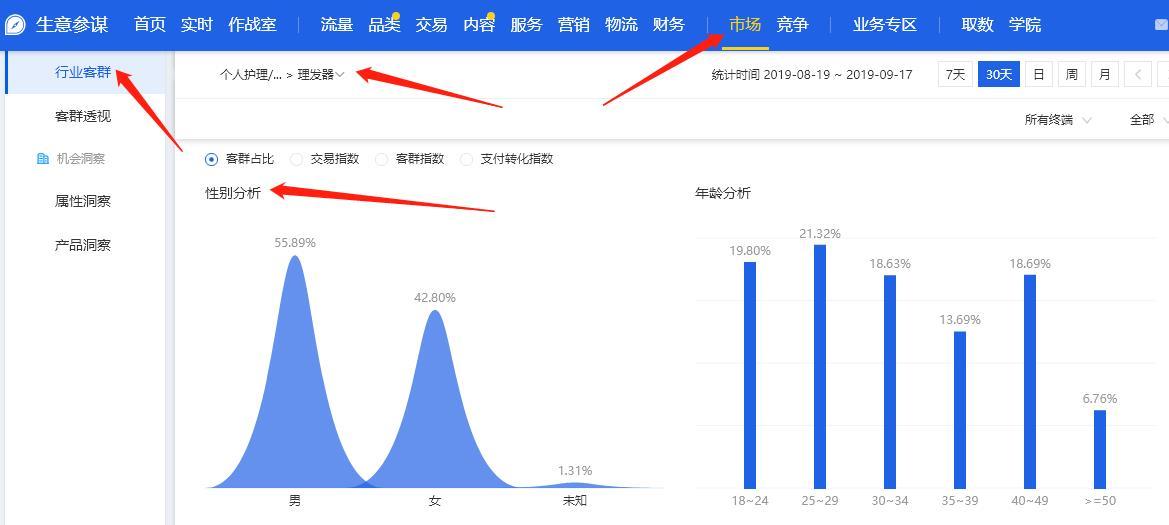 A、如果是新店的话,参考行业客群,需要用到专业版生意参谋,看行业客群,步骤如下: