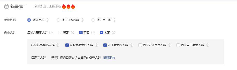 B、如何你推广的新品,侧重人群可以选择性去开或者全开,老品的话根据你直通车筛选出来优质人群的特性去选择就可以。如图所示: