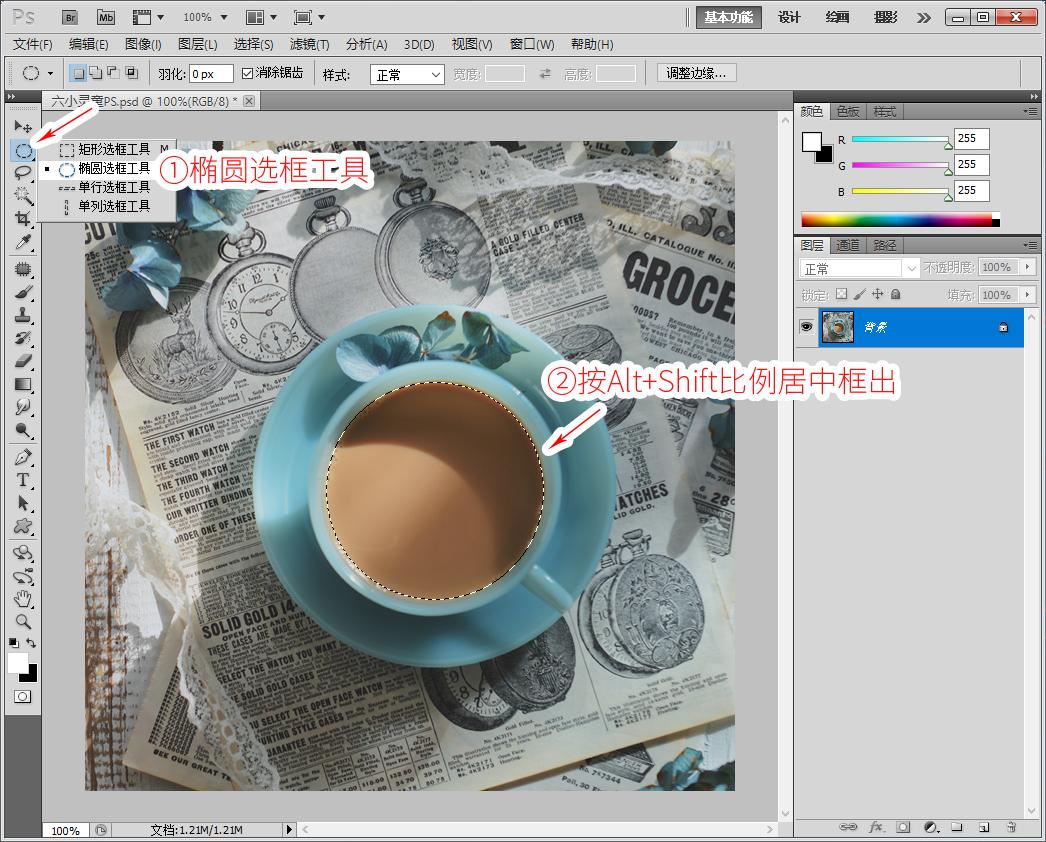 1、右击工具,选择“椭圆选框工具”