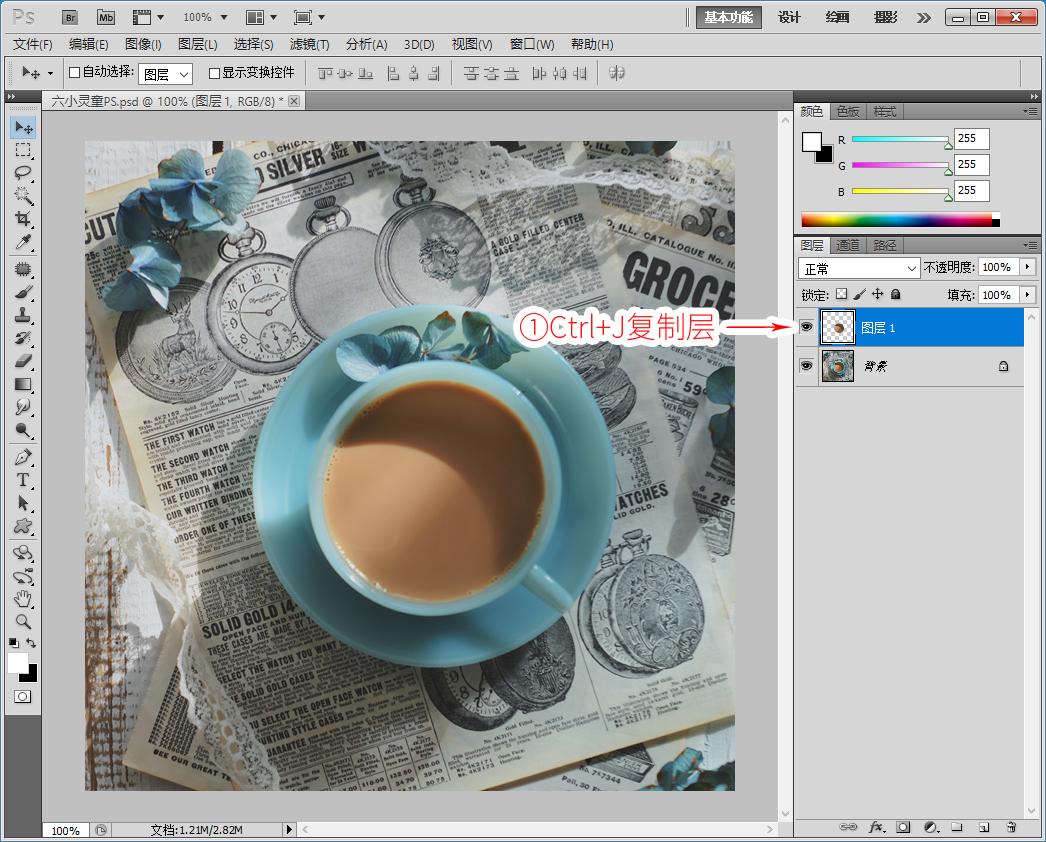 1、Ctrl+J复制层,如图下: