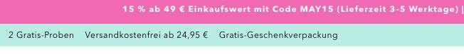 另外,douglas online隔三差五就有折扣(15%或20%),只要有什么节日,他们家都会打折,比如快到母亲节了,买满49欧就有15%的折扣,且超过24.95欧即可免邮,还会送两个小样,香水小样居多。大家买东西前可以多关注下douglas官网。
