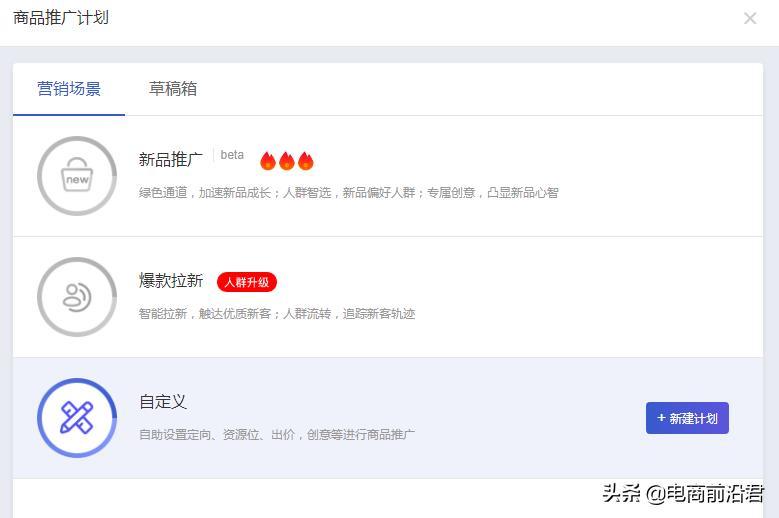 比如上新频繁,店铺在线商品多,高客单价的商品可以用新品推广来测款,获取低价流量。可以将店内的产品在爆款拉新场景内铺开测试效果,数据好的话,转移到自定义场景给予更大的流量,尝试打爆。