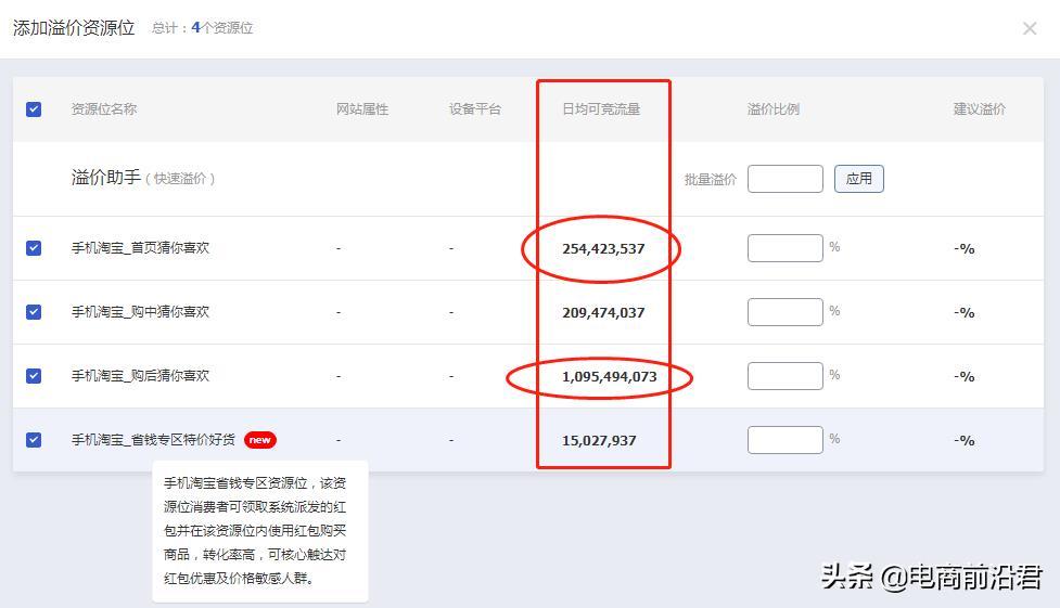 (7)基础流量包:通过定向的出价控制,也是只能定向推送的主要位置,产品销量权重足够,标签突出的情况下投放,效果最佳。建议前期压制,后期通过提高折扣放开。