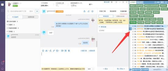 按照提示这时可以在右侧看到有:买家订单、商品推荐、快捷回复三个选项卡,可根据所需点击查看与设置。
