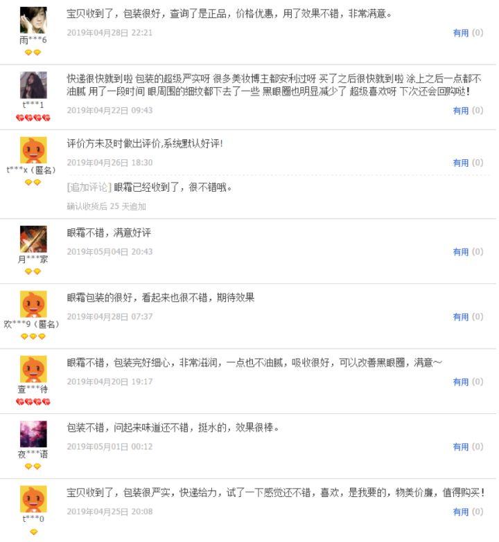 看出区别了吗,假货店的评价就是很不走心,很敷衍,感觉就是刷单的统一语句。(前老板家也试过刷单,评价真的很假)常用语就是宝贝收到了,眼霜不错。正品店的评价就比较中肯,有场景,有人物个性,甚至还有针对产品本身的一些不好的评价。
