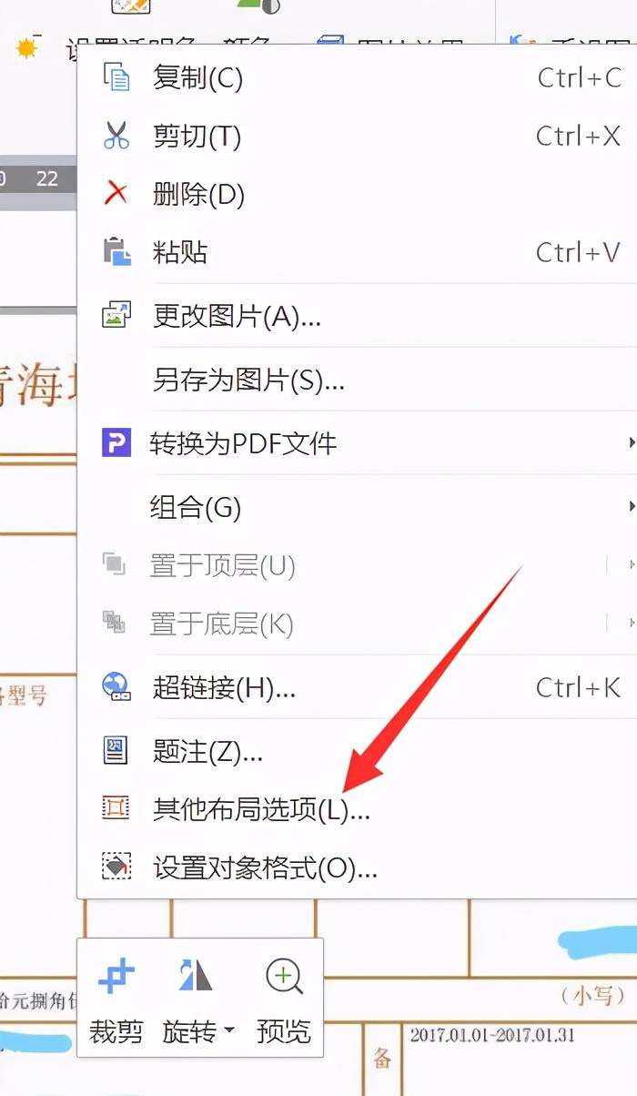 第三步:调整高度为13.97cm,点击鼠标右键选择“其他布局选项”选择“大小”设置高度。保持纵横比不变。