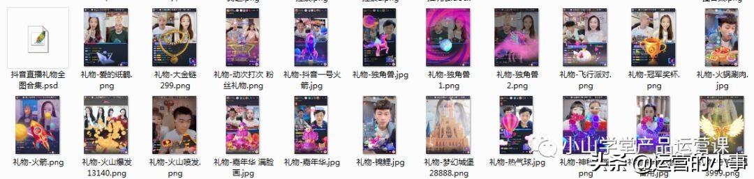 礼物的图片太多,篇幅有限,不一一展开放了。以上只是我截图的一部分。90%的抖音礼物我就亲自见过了,很震撼。