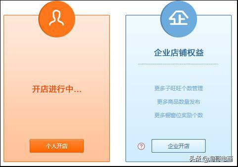 2、接下来,您会进入个人开店与企业开店中,点击个人开店