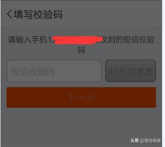 将手机短信上收到的验证码填写在对应的方框内,然后点击“下一步”。