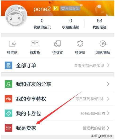 打开我的淘宝页面。你会看到“我是卖家”的选项。点开它。进行下一步。