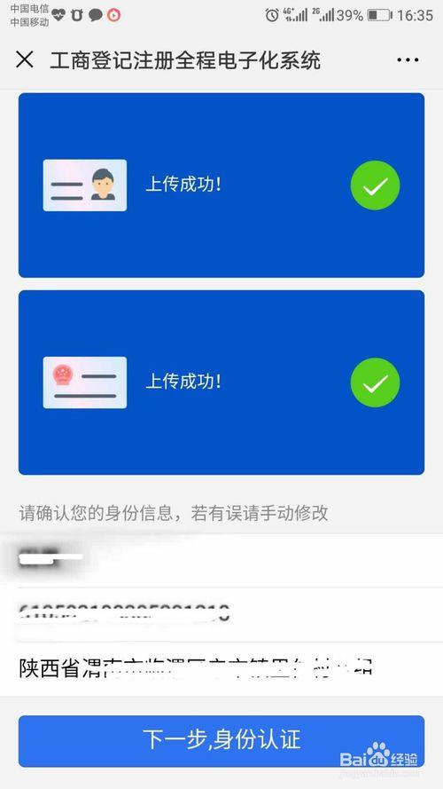 点击“下一步,身份认证”