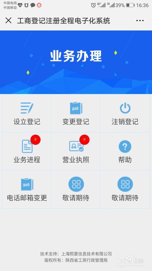 选择业务办理-工商执照业务