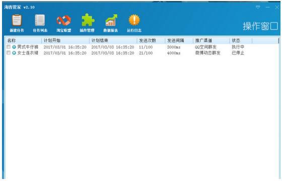 淘客管家这款软件我可以把它定义为发布软件,当然他还有强大的统计功能。上面我有提到,你手工发贴,发朋友圈是不是很累?还废时间?那么用了这淘客管家后,你会发现,原来事情可以这样干的。如图: