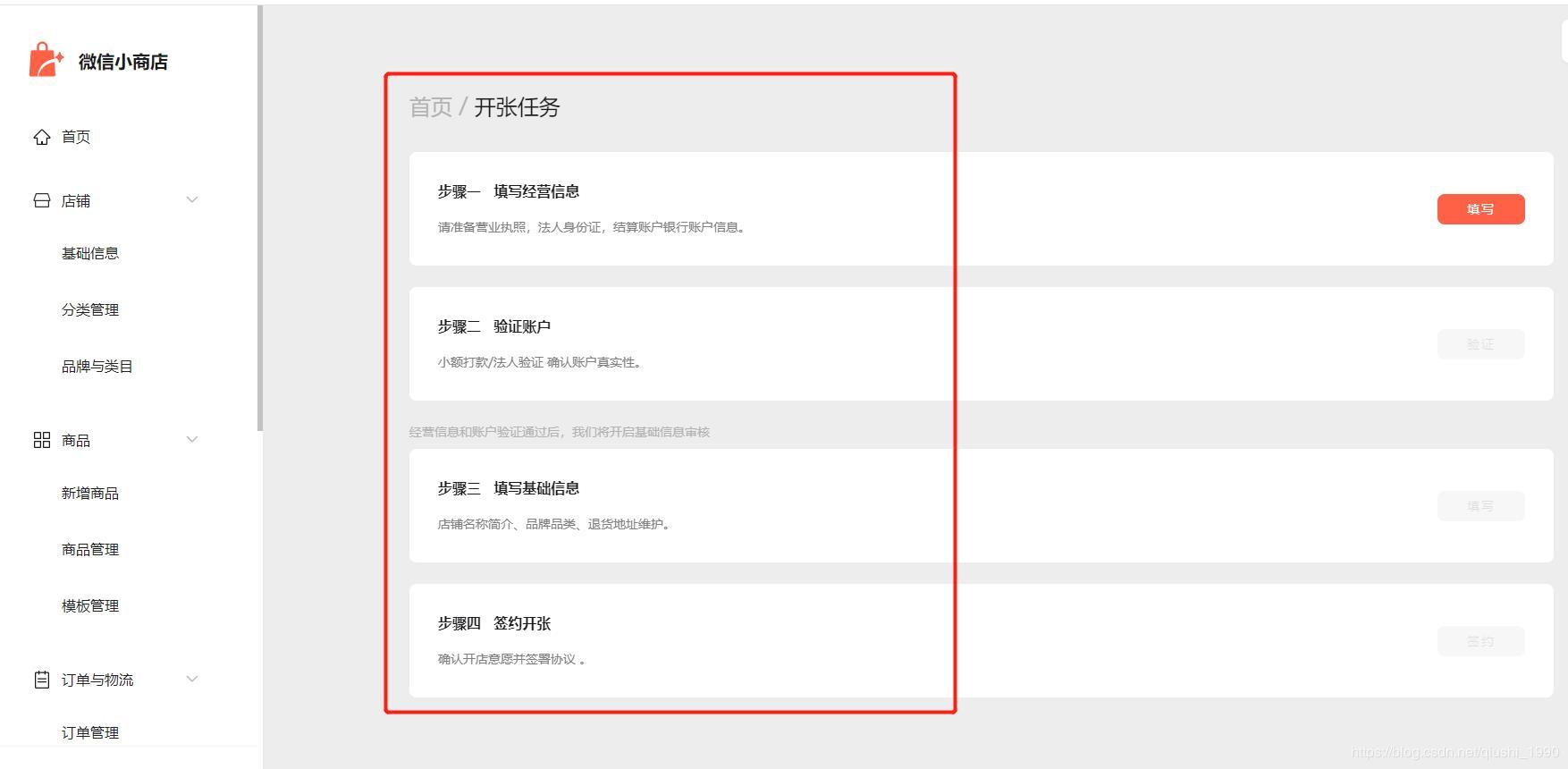 然后点击去开张,填写小商店信息,按照下图所示的4个步骤来。