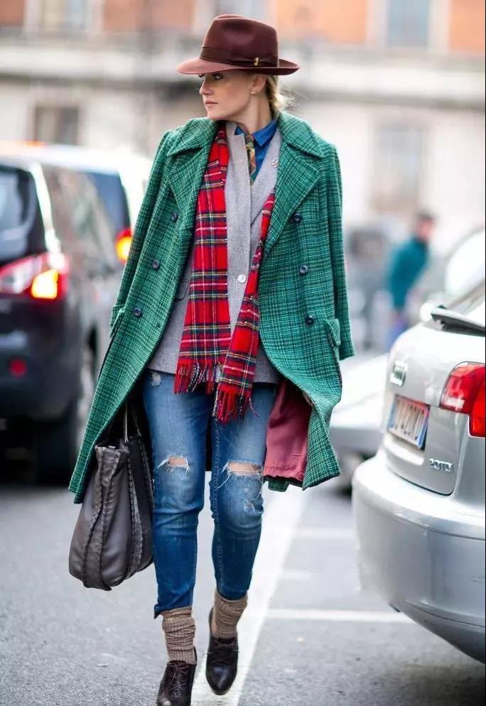深红配深绿,同样是红配绿,但却有着高级质感。这也就是为什么不懂色彩不要随便穿鲜艳色的原因,因为不懂深浅变化,就会成为灾难。