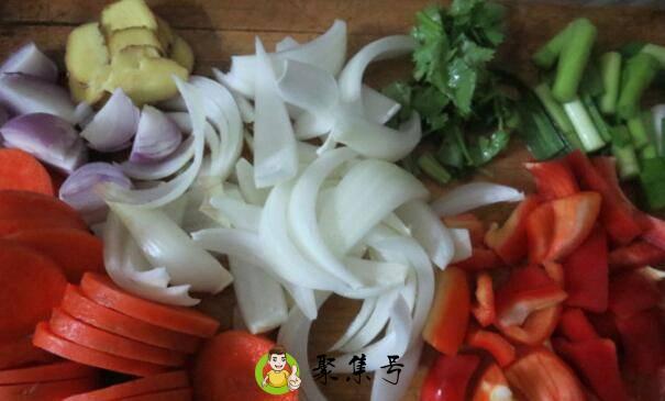 用料:黄鳝300克、姜1/2块、胡萝卜1/2个、红葱头2个、蚝油1汤匙、香菜1根、黑胡椒粉3克、蒜苗1条、海鲜酱1汤匙、红辣椒2个、白糖适量、洋葱1/2个、清水适量。