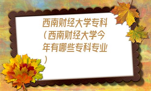 正文 西南财经大学专科专业(西南财经大学专科学费) 百科达人 V网站编辑 /2021-10-07 09:27:11 /183 阅读 1007 西南财经大学没有专科,西南财经大学天府学院有专科专业,但那不是西南财经大学的,他们有一定的区别。至于西南财经大学天府学院详细的专科专业介绍,篇幅太长,请到天府学院招生网站自己浏览今年的招生计划吧。专科专业学费每年13000和16000学制3年。 声明:本文内容及图片来源于读者投稿,本网站无法甄别是否为投稿用户创作以及文章的准确性,本站尊重并保护知识产权,根据《信息网络传播权保护条例》,如果我们转载的作品侵犯了您的权利,请在一个月内通知我们,我们会及时删除。请将本侵权页面网址发送邮件到laoyang1981@qq.com,我们会及时做删除处理。