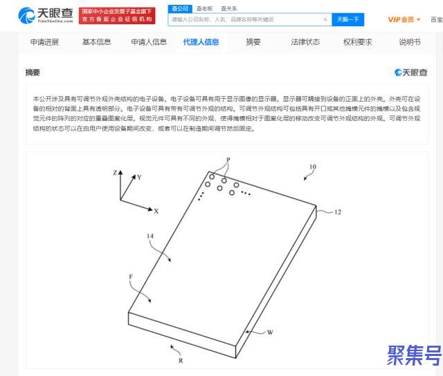 正文 苹果公开可调节外观结构的电子设备专利(苹果手机外观专利) kpjjhadmin V管理员 /2021-11-22 14:35:13 /142 阅读 1122 天眼查App显示,近日,苹果公司公开“具有可调节外观外壳结构的电子设备”专利。专利摘要显示,本公开中的电子设备具有用于显示图像的显示器,显示器耦接到设备正面上的外壳,外壳在背面具有透明部分。电子设备带有可调节外观的结构,可调节外观结构的状态可以在用户使用设备期间改变等。本文源自金融界网 声明:本文内容及图片来源于读者投稿,本网站无法甄别是否为投稿用户创作以及文章的准确性,本站尊重并保护知识产权,根据《信息网络传播权保护条例》,如果我们转载的作品侵犯了您的权利,请在一个月内通知我们,我们会及时删除。请将本侵权页面网址发送邮件到laoyang1981@qq.com,我们会及时做删除处理。