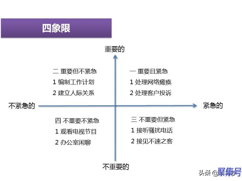 所以,矩阵分析法其实就是把事物分成四个象限,所以也叫四象限分析法,这种分析方法在我们的日常生活和工作中也很常用。