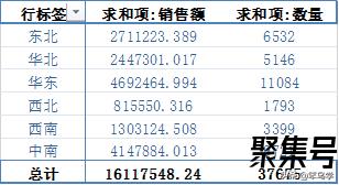 在数据分析工作中,也可以按照这个思路来分析问题,例如,想知道各个地区的销售额和数量,可以做如下表所示的统计。