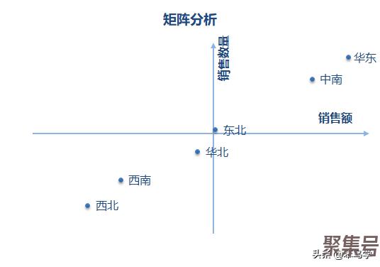 从这个矩阵中,容易看出,哪些地区的销售额和销售数量都较高,哪些地区的销售额和销售数量都较低。