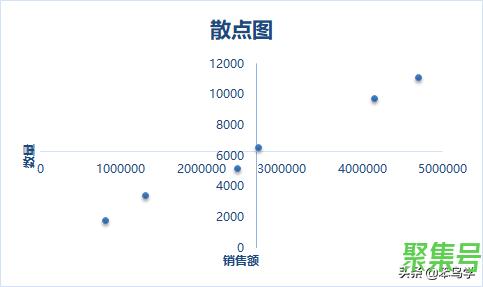 第二步:绘制散点图,以销售额作为X轴,以数量作为Y轴,如下图所示。
